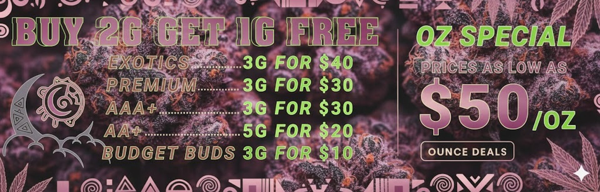 Your search for affordable premium cannabis ends here! Our live menu is packed with exclusive cash deals on the finest strains. Experience the difference of high-quality cannabis without the premium price tag. Take advantage of our incredible Oz Special starting at just $50/OZ and our popular Buy 2G Get 1G Free offer. These cheap weed deals are cash-only, ensuring you get the absolute best value. Check our menu frequently – these best cash cannabis deals move fast!